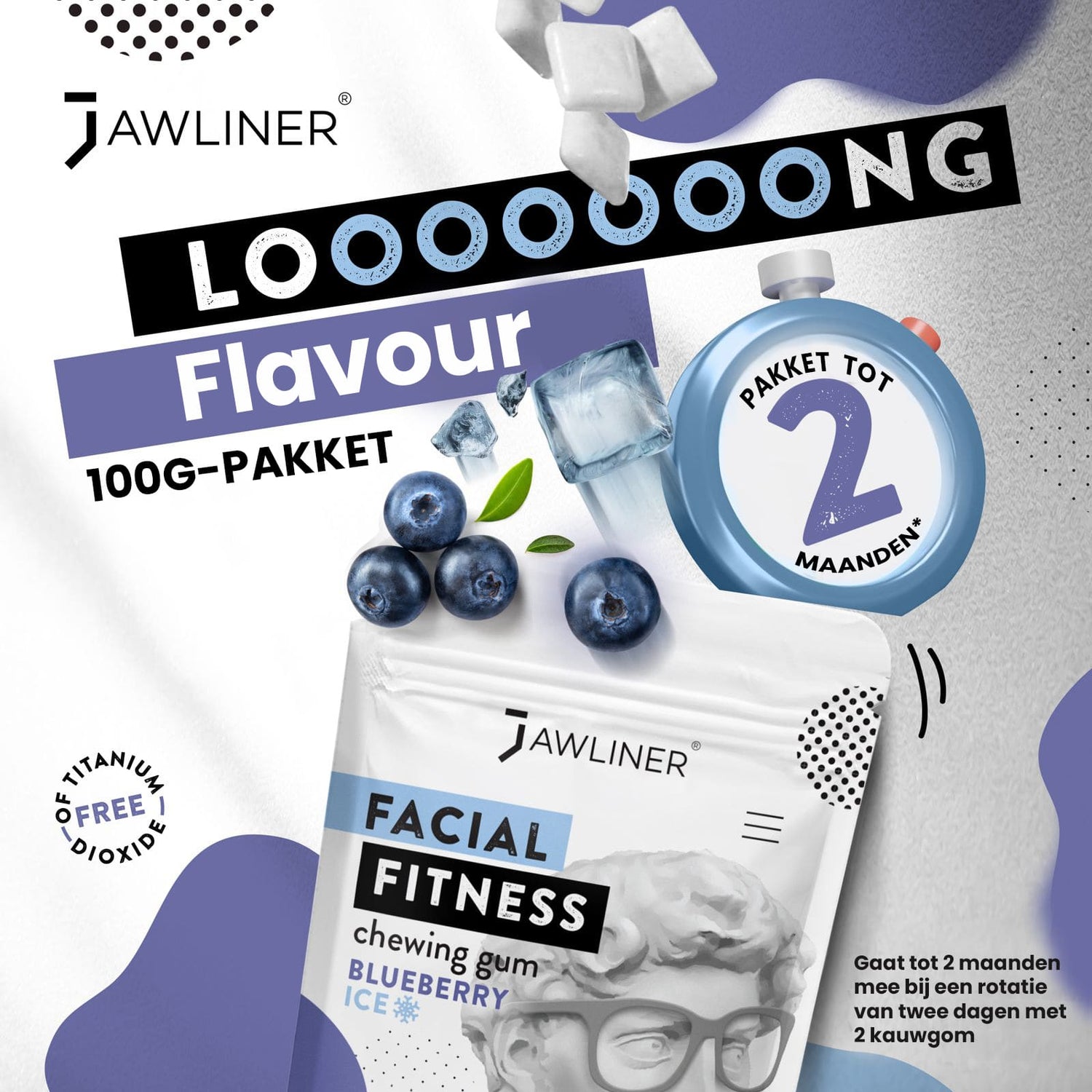 Werk aan je perfecte kaaklijn terwijl je geniet van een verfrissende blueberry ICE smaak! Verbeter je kaak- en gezichtsspieren en geniet tegelijkertijd van een frisse adem. Vanaf nu smaakt trainen nog beter.